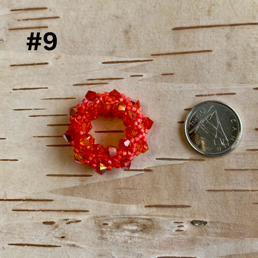 Beaded cogs are a mix of Swarovski, Czech crystals and pearls as well as cylinder and seed beads. Each is approximately 35mm in diameter.